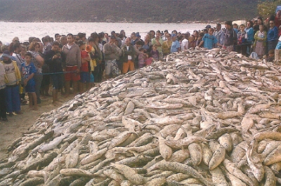 Segundo o pescador, devido à grande quantidade de peixes, a contagem só foi finalizada por volta do meio-dia, 12 horas depois do arrastão ter se encerrado.
